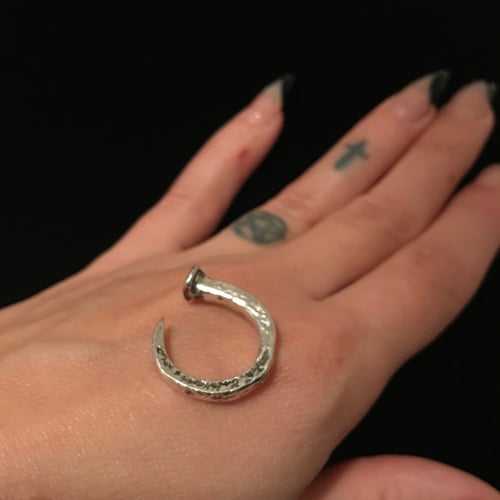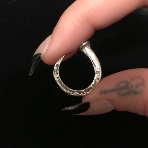 Coffin nails are an ancient talisman for protection against negativity and attracting good luck. This was an acquired 18th century coffin nail cast and forged into a ring.